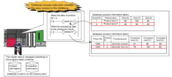 數(shù)據(jù)庫(kù)功能將包括產(chǎn)品信息和生產(chǎn)信息在內(nèi)的列表數(shù)據(jù)在可編程控制器中作為數(shù)據(jù)庫(kù)進(jìn)行管理。